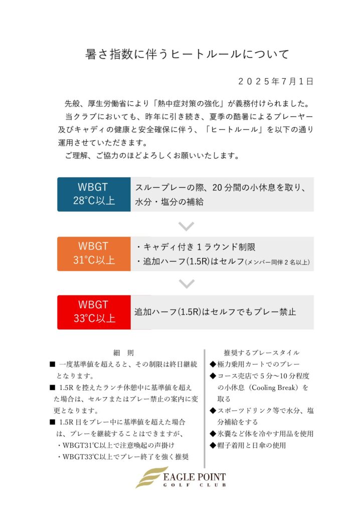 「暑さ指数に伴うヒートルール」を2025年7月1日より運用いたしますので、